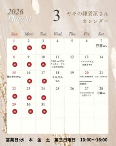 3月の営業カレンダーが出来ました。